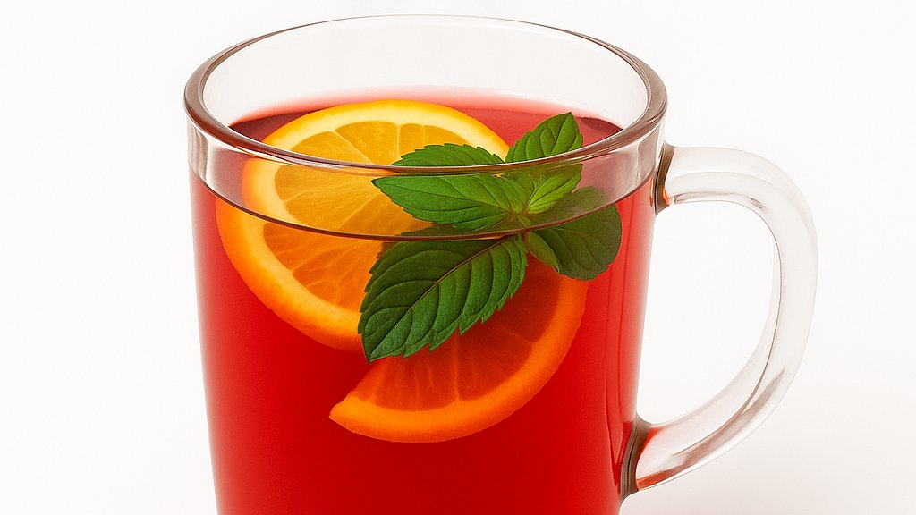 Апельсин, лимон, варенье малиновое, мята