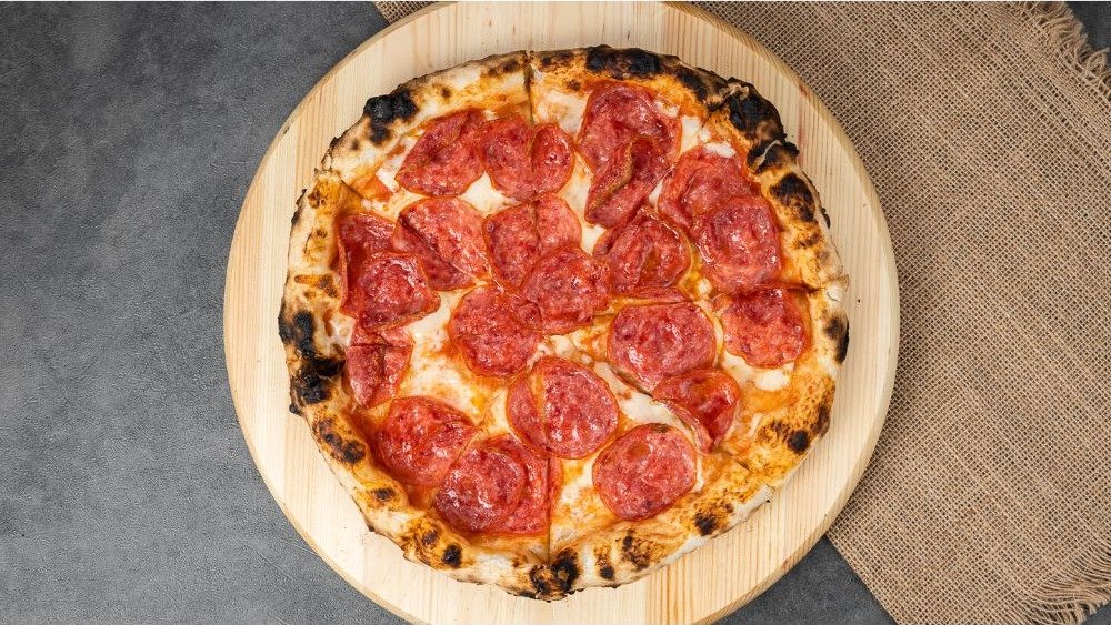 Томатный соус, моцарелла, салями