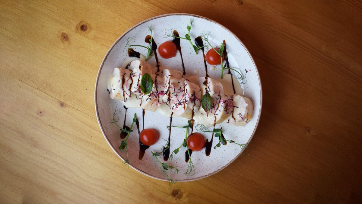 Сливочный соус, моцарелла, куриное филе, ароматное масло