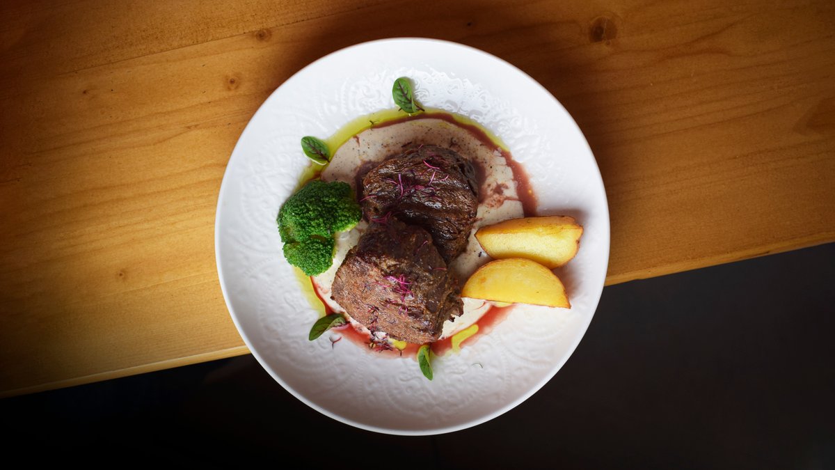 Говяжья вырезка, брокколи, картофель по-деревенски