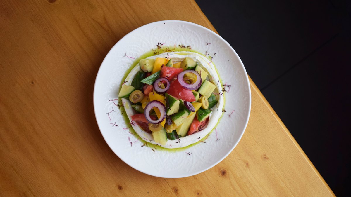 Греческий салат с кремом из сыра фета