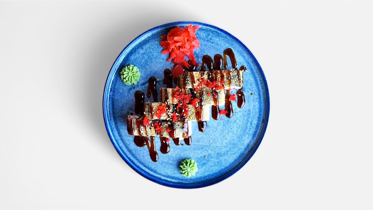 Рис, нори, сливочный сыр, огурцы, угорь, унаги соус, кунжут