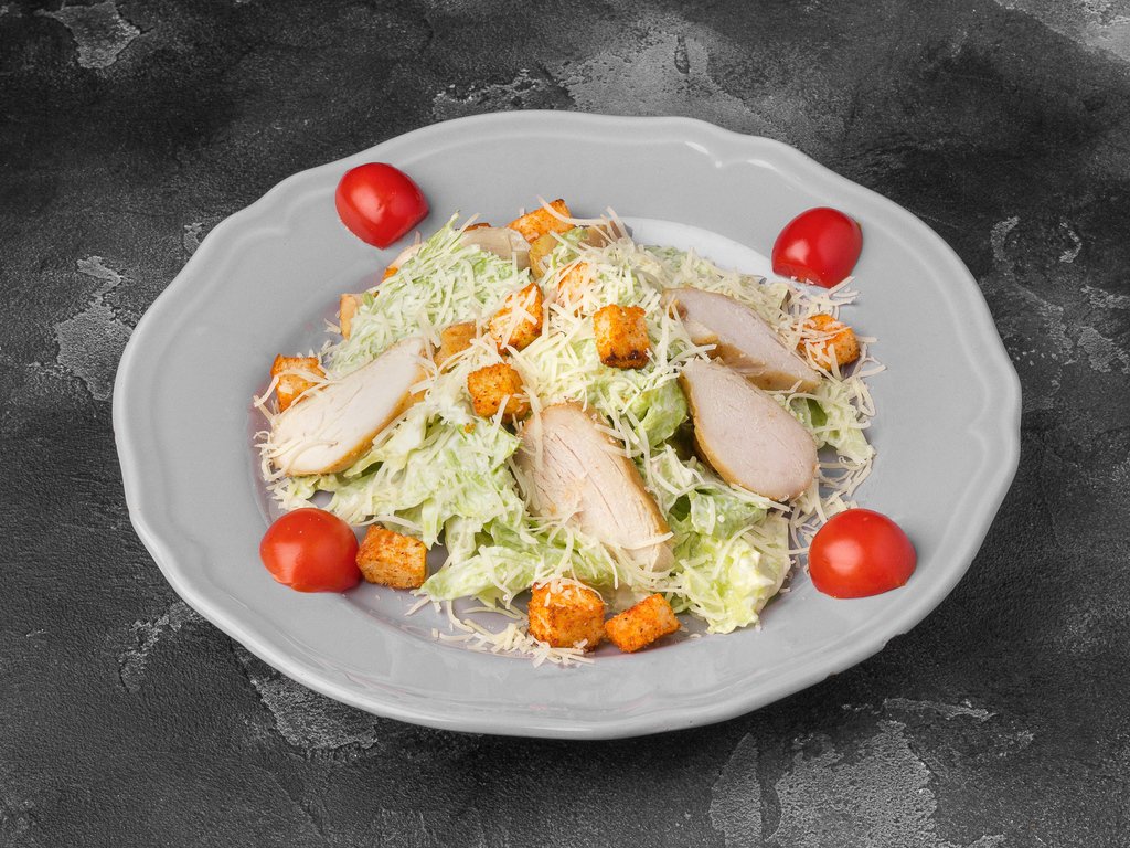 Тунец, айсберг, яйцо, соленные огурцы, майонез, сыр пармезан, соус от шефа