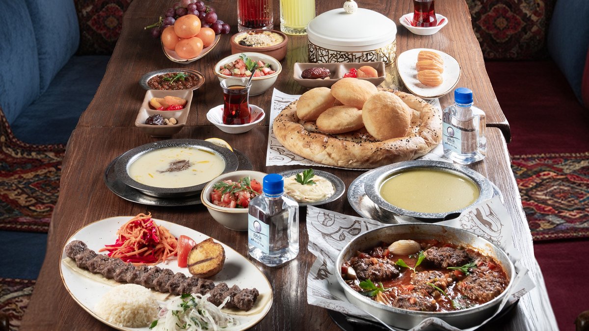 Суп на выбор, салат, основное блюдо на выбор, хлеб, напитки на выбор, десерты, фрукты, сухофрукты, вода, финики