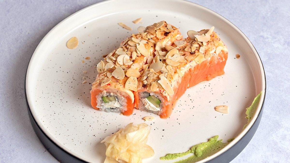 Запеченый ролл с Норвежским лососем, сыром и авокадо. Заправляется медом или соусом унаги. Посыпается орехами. Наши роллы готовятся исключительно из охлаждённой океанической рыбы, их незабываемый вкус не оставит Вас равнодушными!