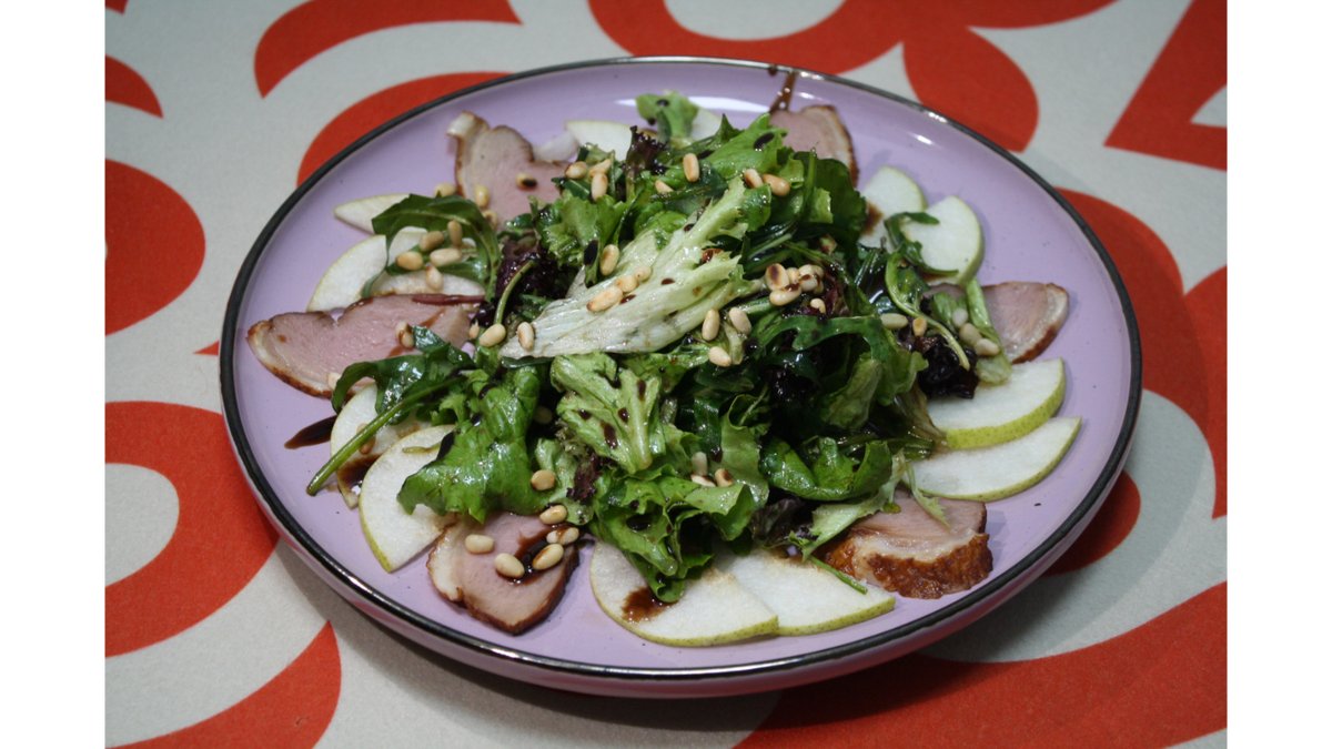 Жукпа нан (шелпек) , томленая конина ,помидор,огурец,соус фирменный