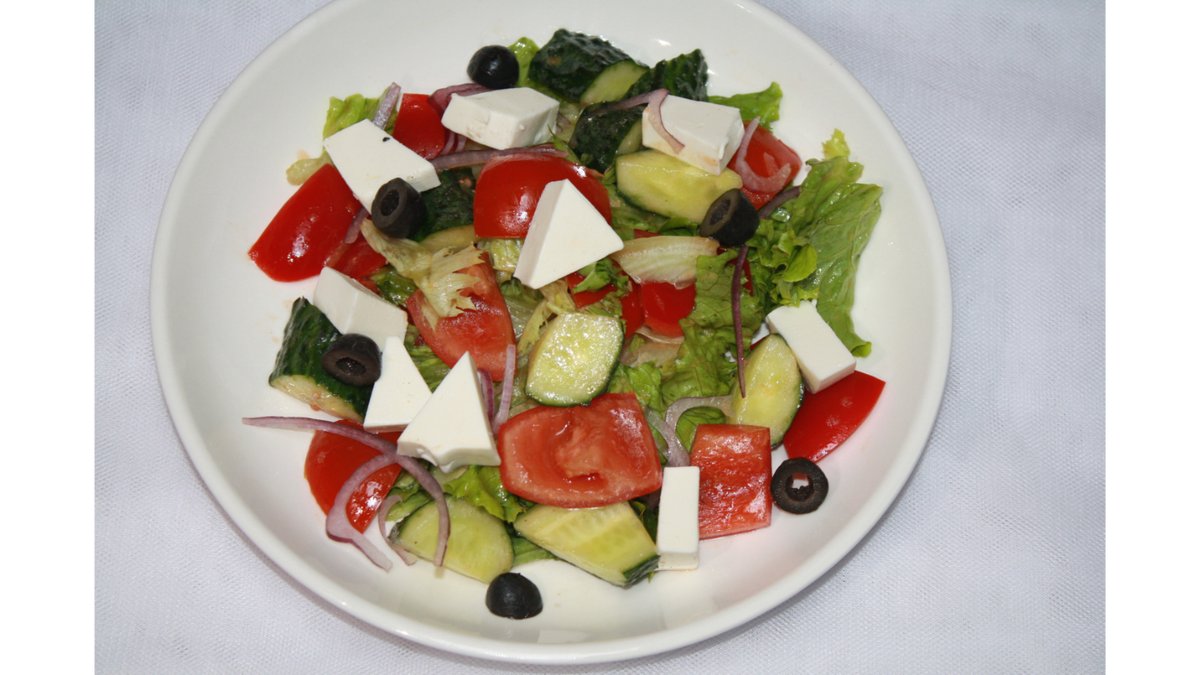 помидор,огурцы,сладкий перец,салат,соус кислый,оливки