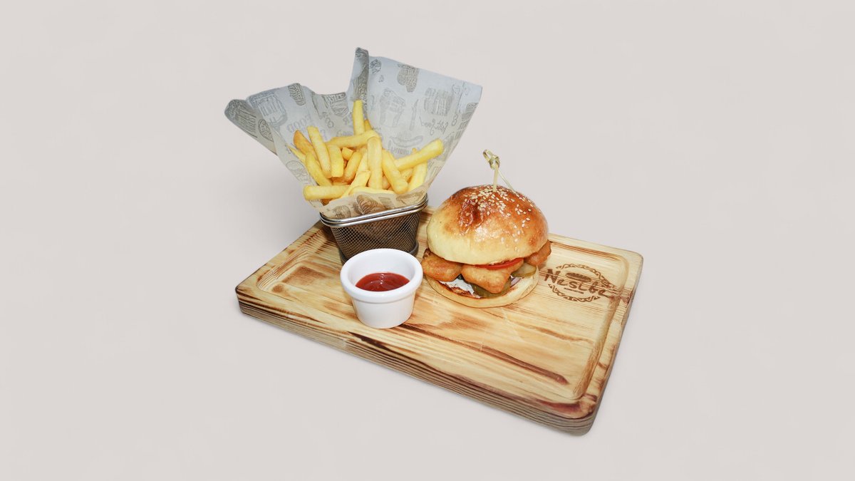 хрустящий багет, томленное конина ,помидор,огурец,соус фирменный