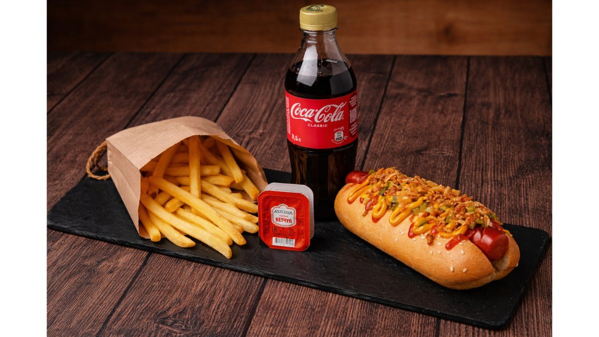 Хот-дог+Фри+Coca-Cola 500 мл +соус