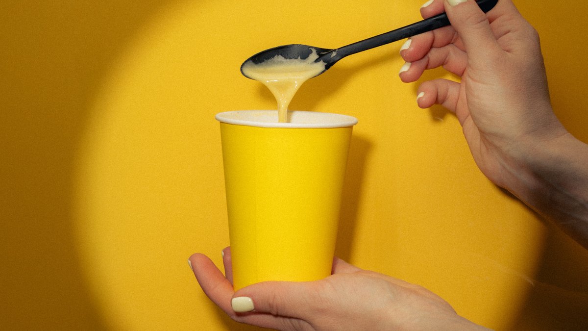Крем-суп из чечевицы на основе овощного бульона, подаётся в стаканчике с собой