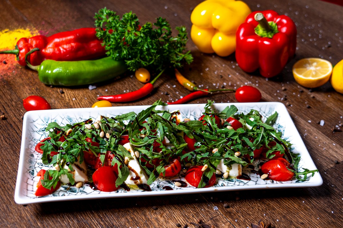 Буратта және балғын қызанақ, песто тұздығымен (буратта со свежими помидорами)
