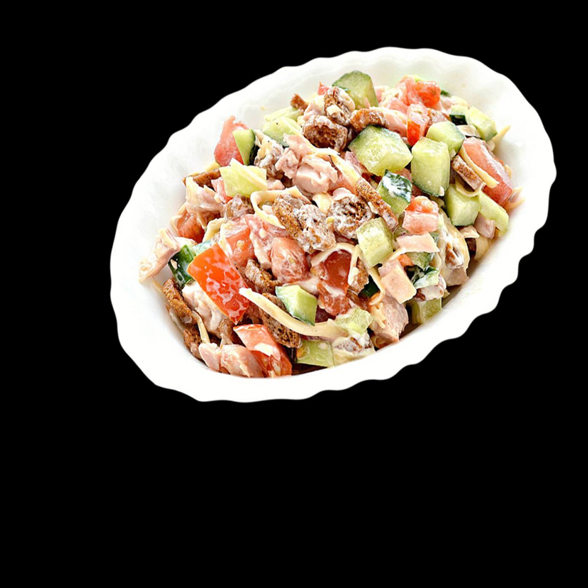 огурец, помидор, курица, сыр, майонез, зелень