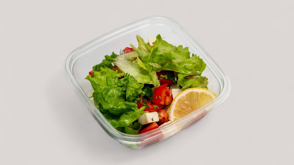Брынза, помидоры, огурцы, зелень, лимон