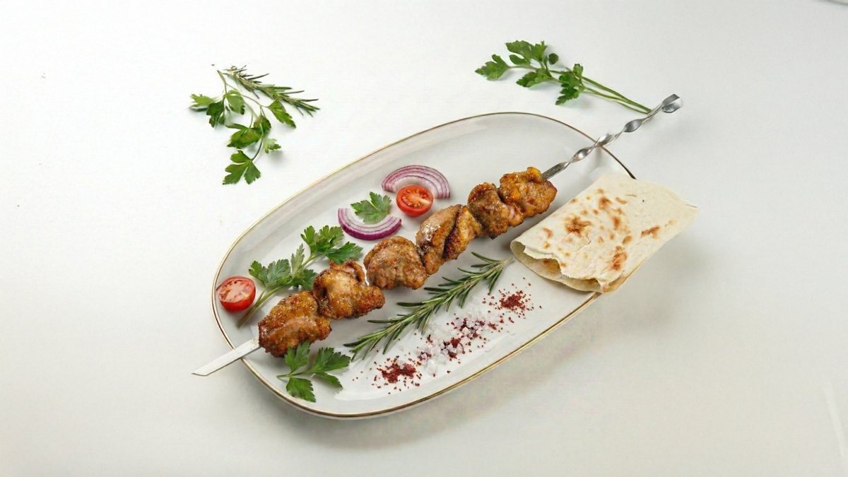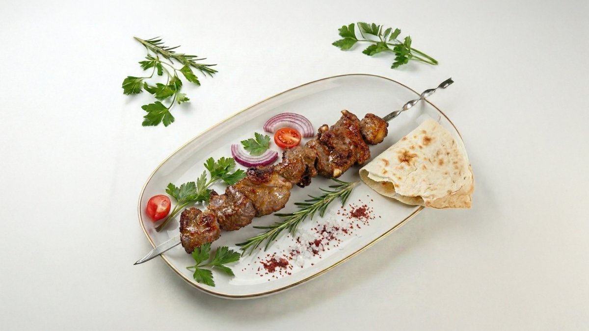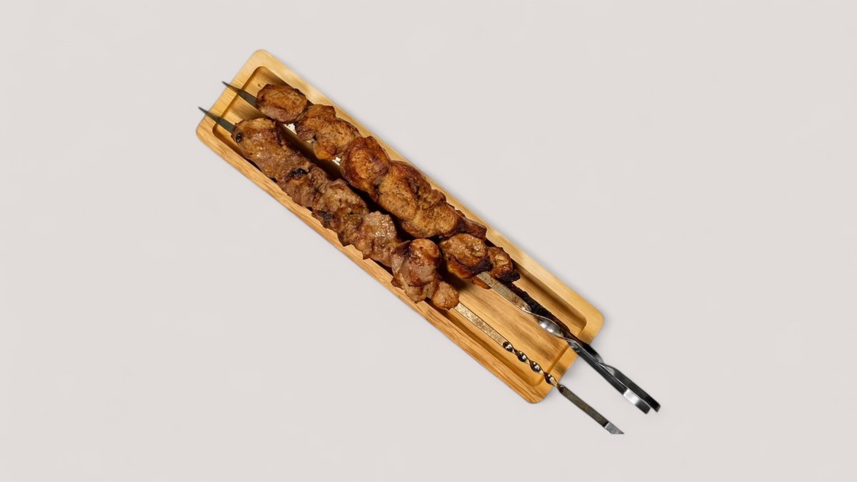 (2 баранины +1 утка в подарок) Сочное комбо из трёх шампуров ароматного шашлыка — идеально прожаренное мясо с аппетитной корочкой.