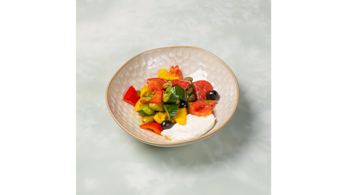 Салат с лососем и фермерской страчателлой