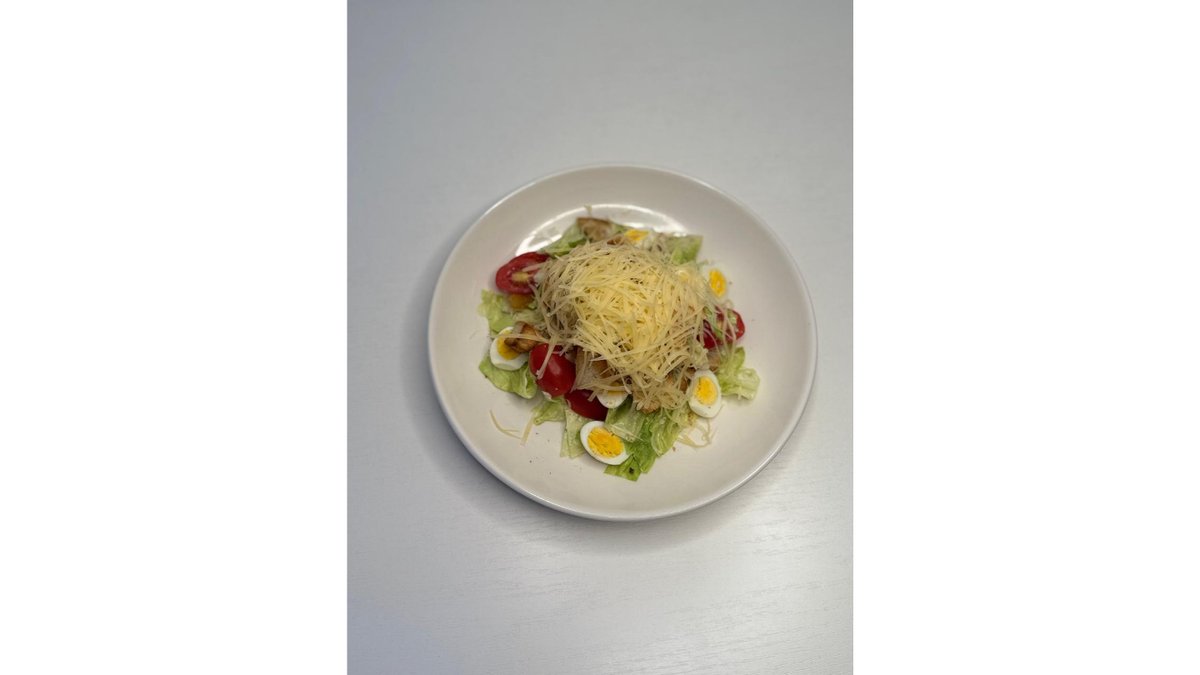 Салат из хрустящих листьев романо, крутоны, пармезан и нежная заправка на основе анчоусов. (300гр)
