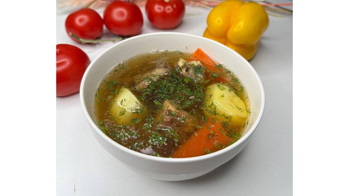 Насыщенный бульон, сочная баранина, картофель, морковь, лук и ароматные специи.