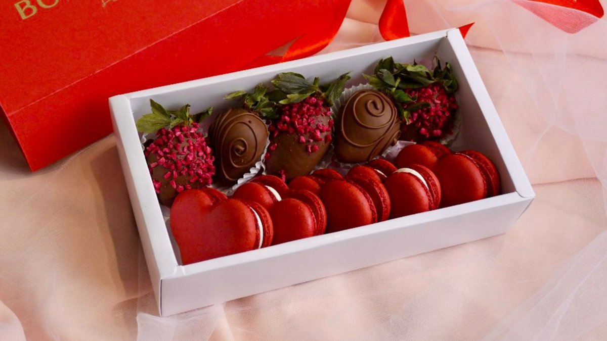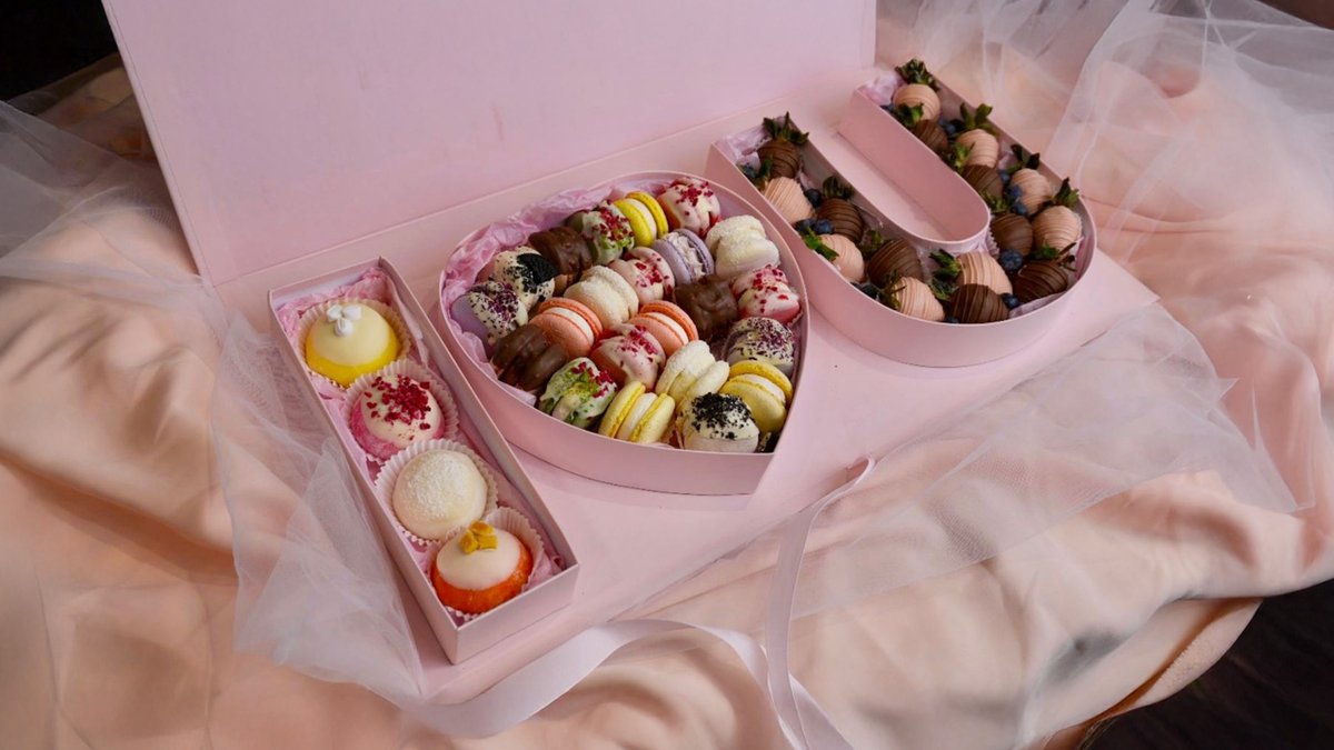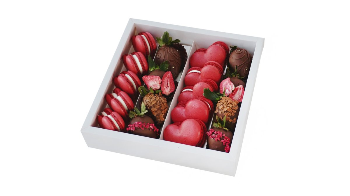 сердце S клубники в шоколаде и макаронс