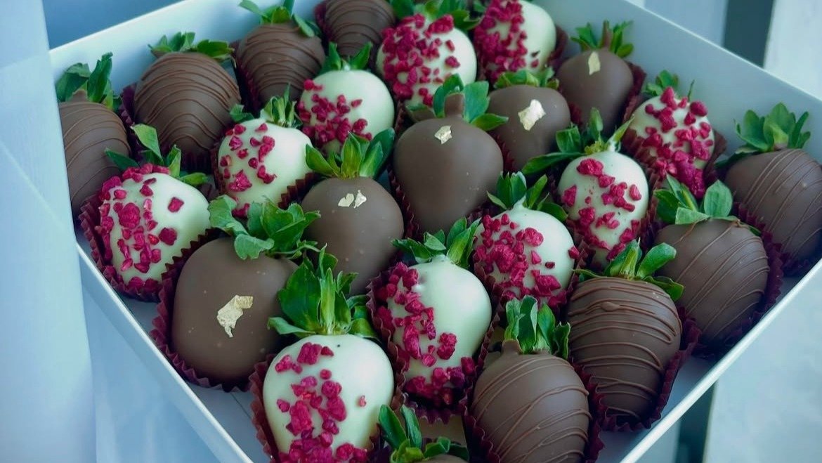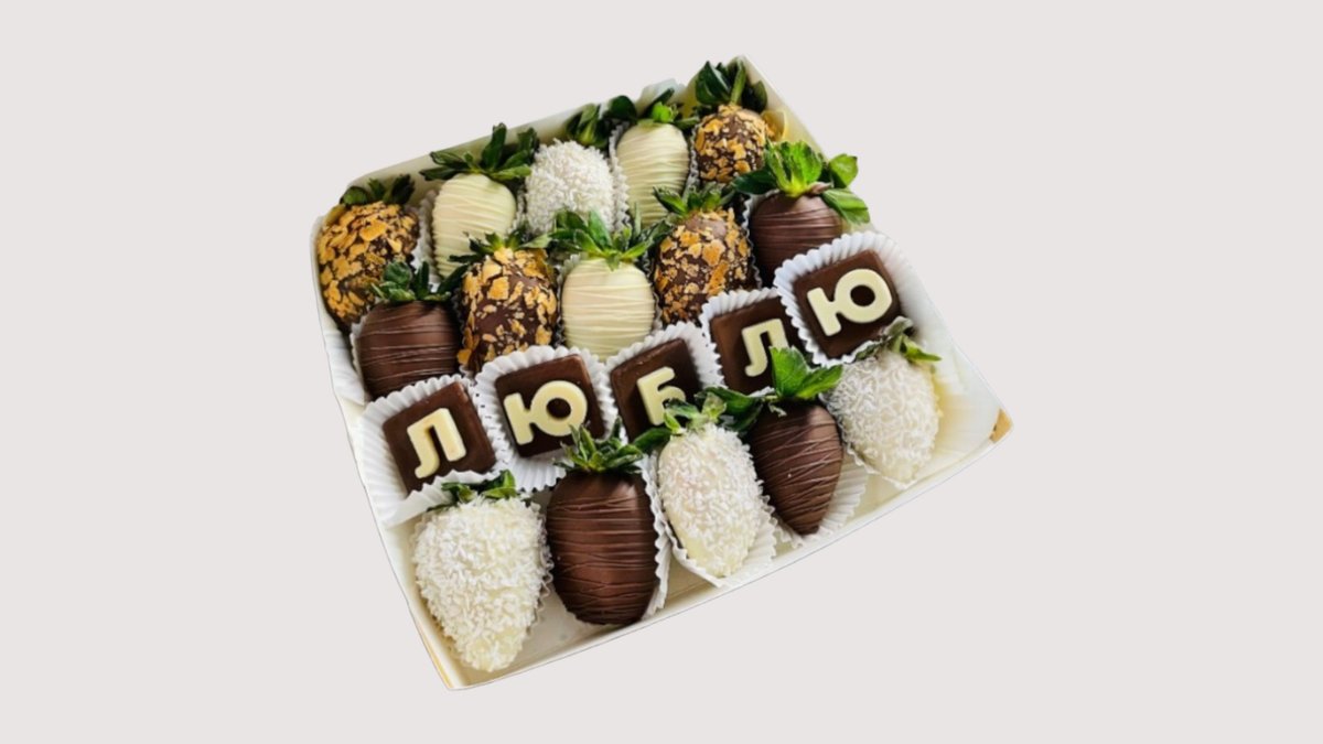 15 шт клубники в шоколаде с надписью люблю 400гр