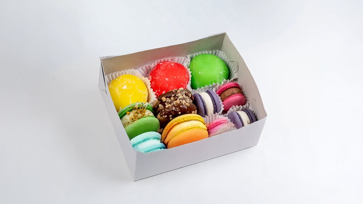 Подарочный бокс 3 моти, 4 макаронс, 4 мини макаронс
