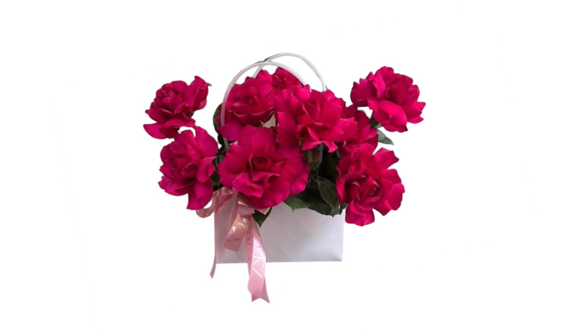 Сумочка из 9 ярко-розовых роз