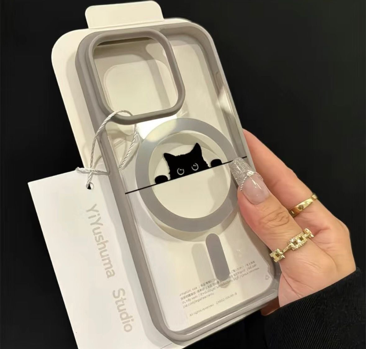Серый чехол с котиком на iPhone 14 pro max
