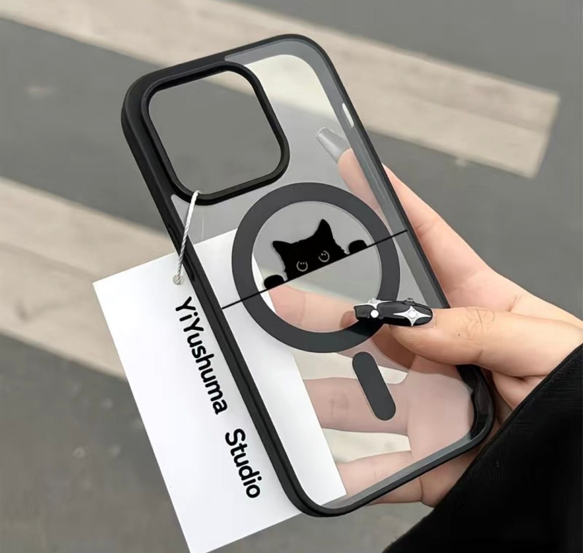 Черный чехол с котиком на iPhone 14