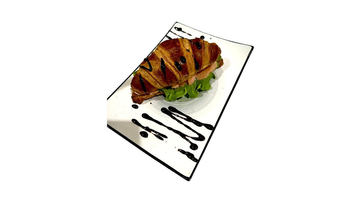 Хрустящий круаасан,ветчина из говвядины,сыр Гауда,лист салата и соус тар-тар
