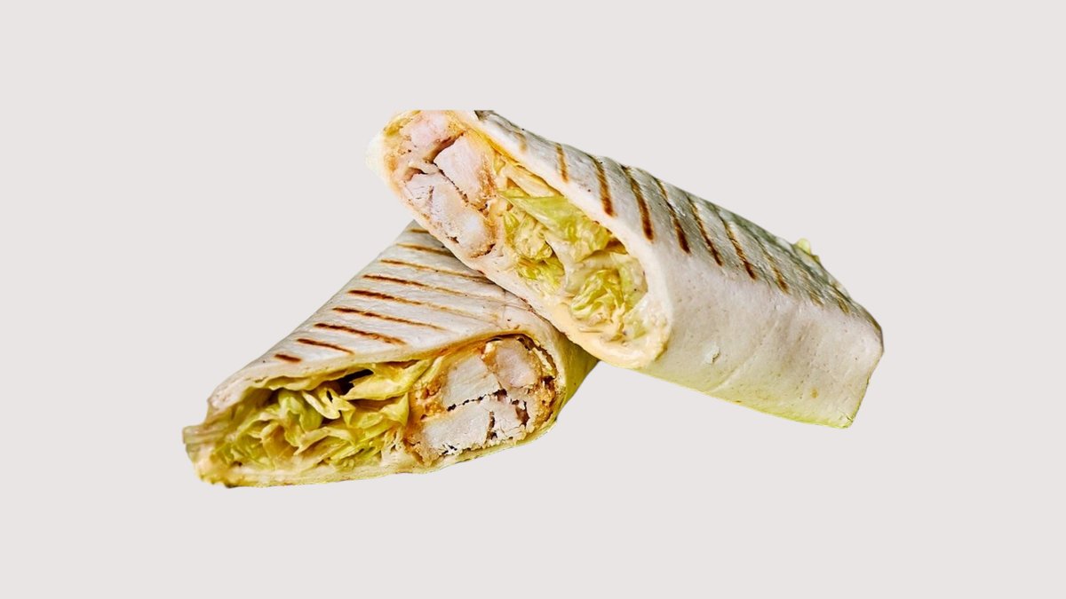 Пшеничная тортилия поджпренная на гриле, панированное филе цыплёнка, салат "Айсберг ", соус "цезарь ", сыр Моцартелла, томаты, фирменный соус