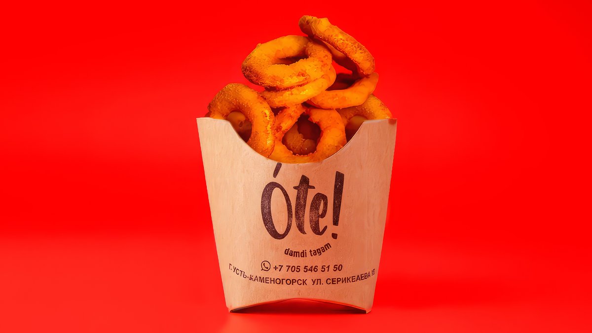 Булочка, котлета говяжья с дымком, сыр Чеддер, луковые кольца, карамельный лук фри, салат, соус горчичный, соус BBQ.