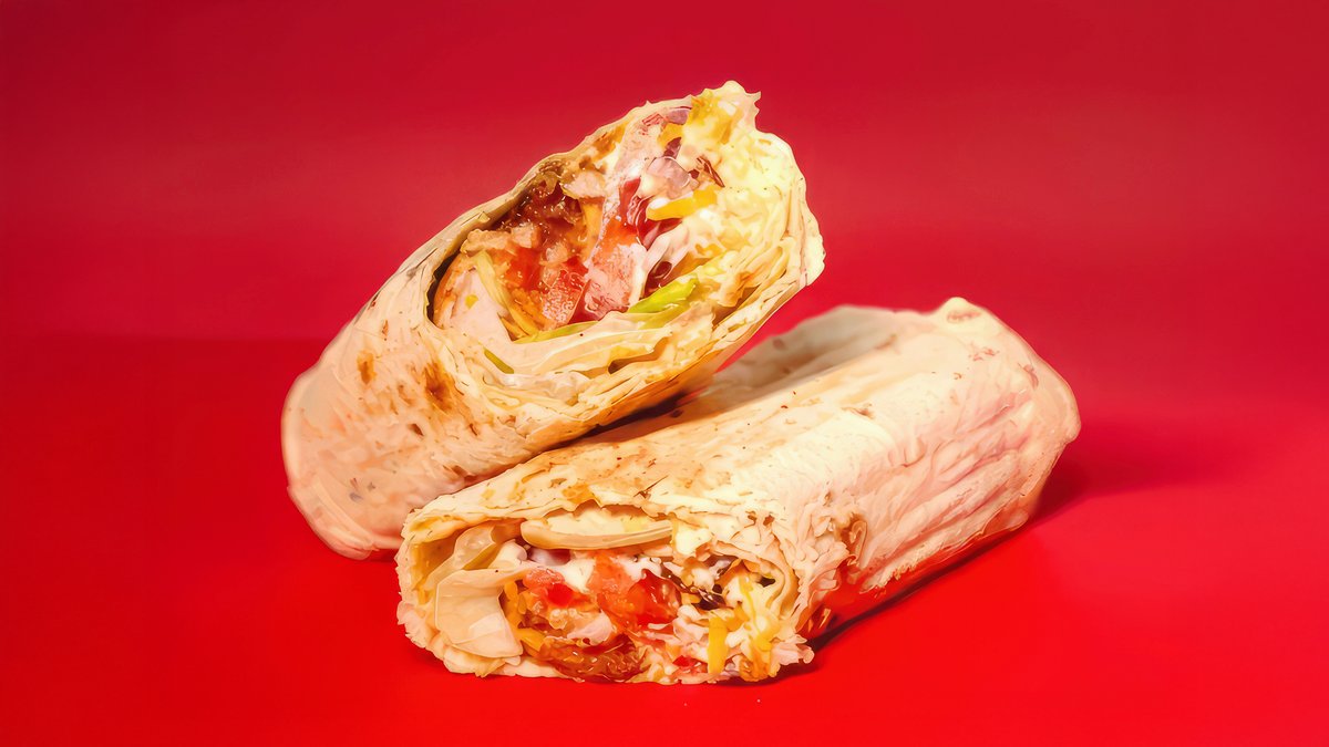 Лаваш, курочка фри, томат, лист салата, лук красный, картофель пай, соус спайси, соус айоли