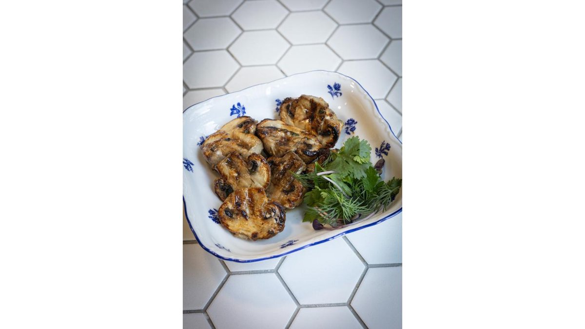 Шампиньоны маринованные с паприкой и чесноком обжаренные на мангале