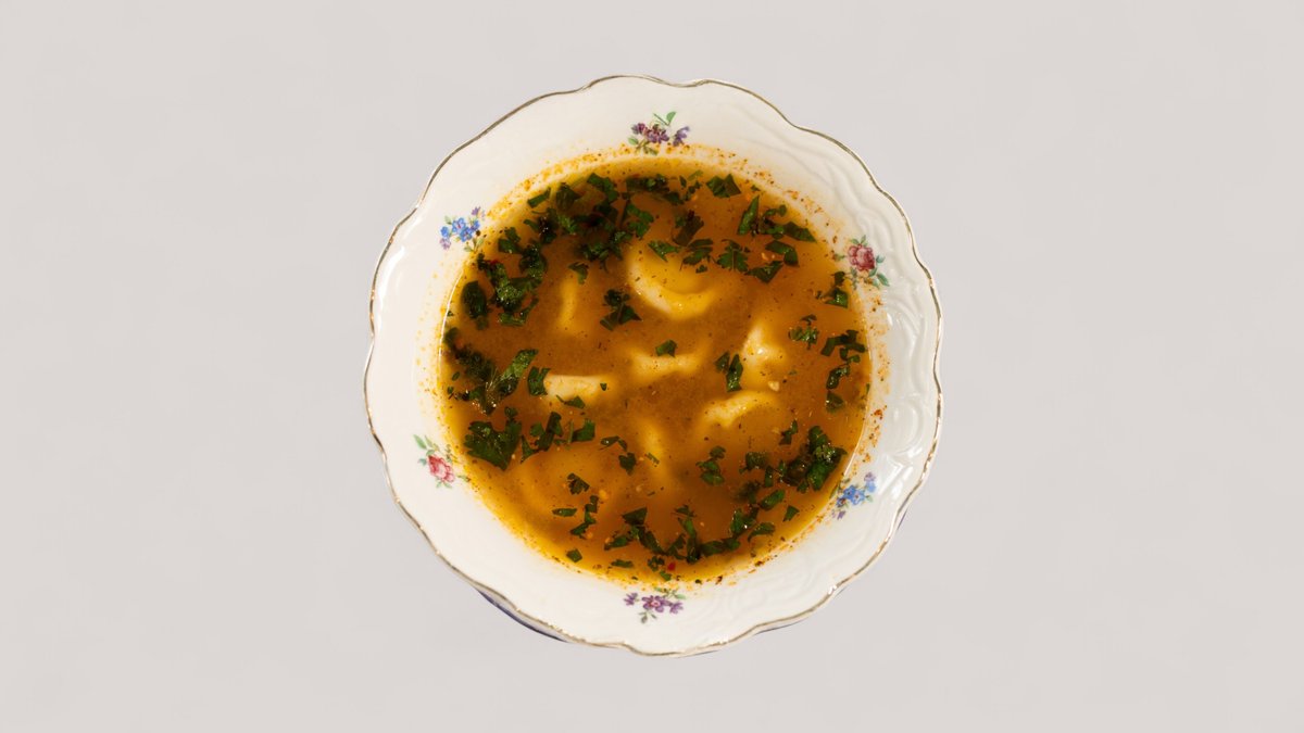 Ароматный мясной бульон с остринкой и домашними мини-хинкалями. Настоящее согревающее удовольствие
