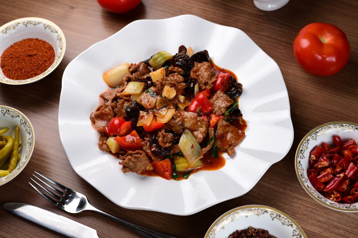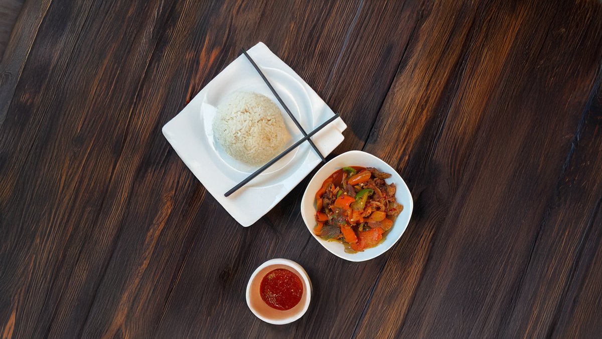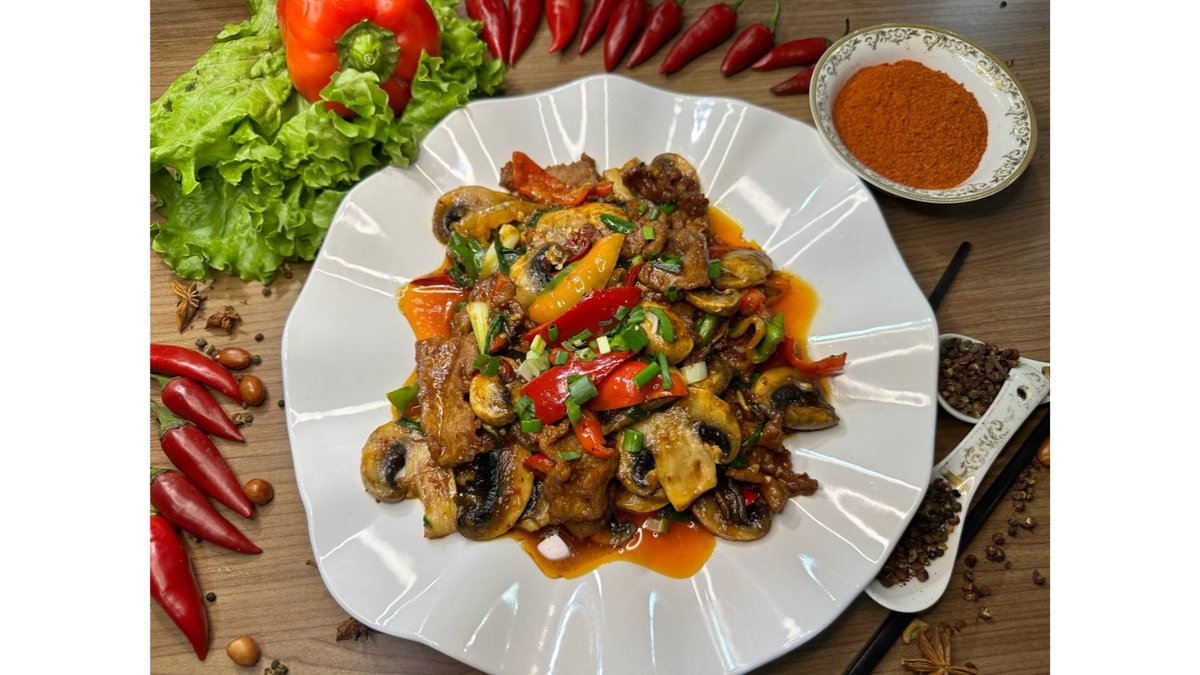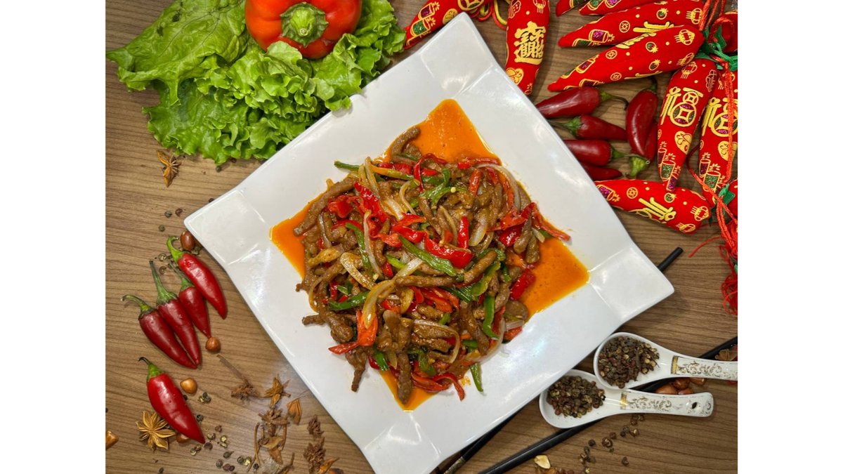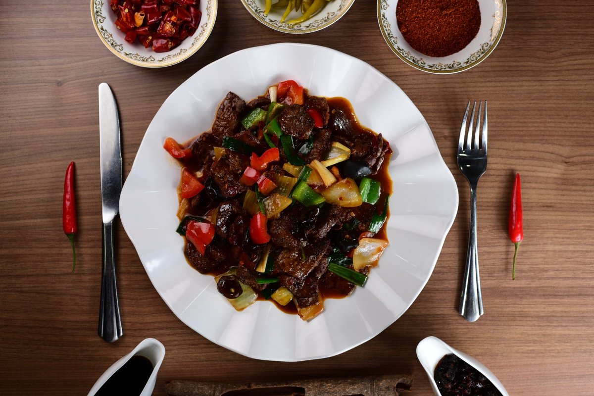 говядина с острым красным перцем и репчатым луком
