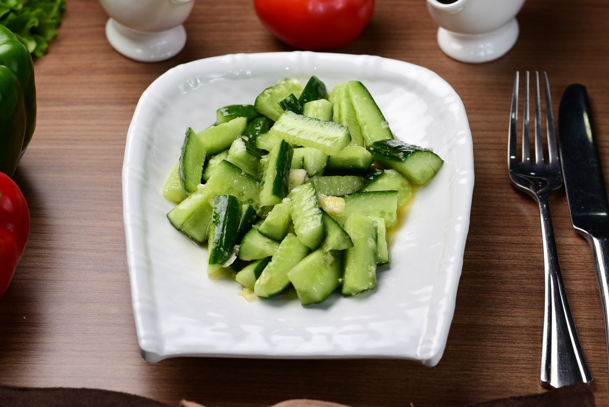 Салат огурцы в чесночном соусе