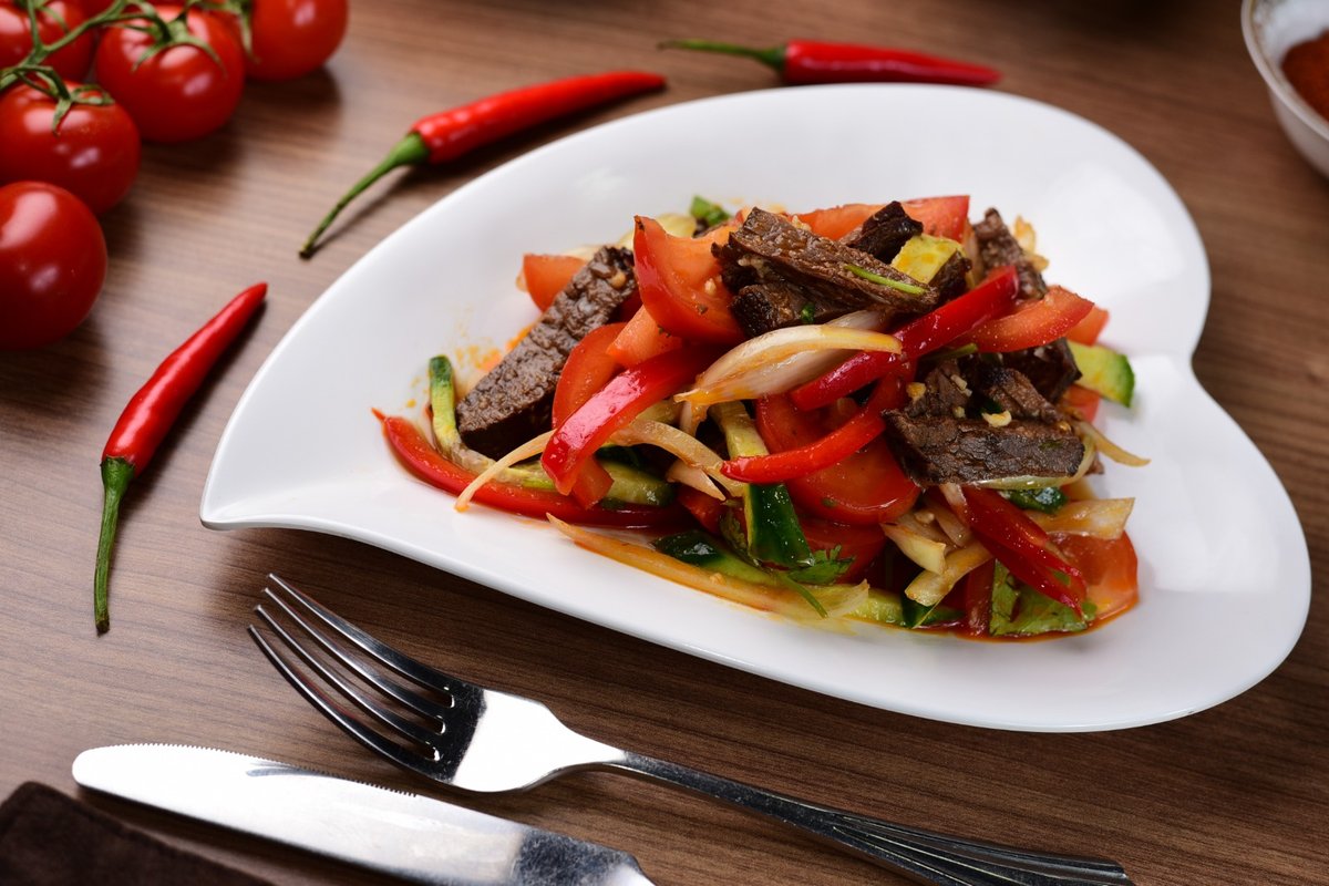 Говядина с острым перцем и луком