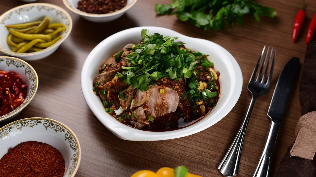 Салат с говяжьим языком фу чи пья