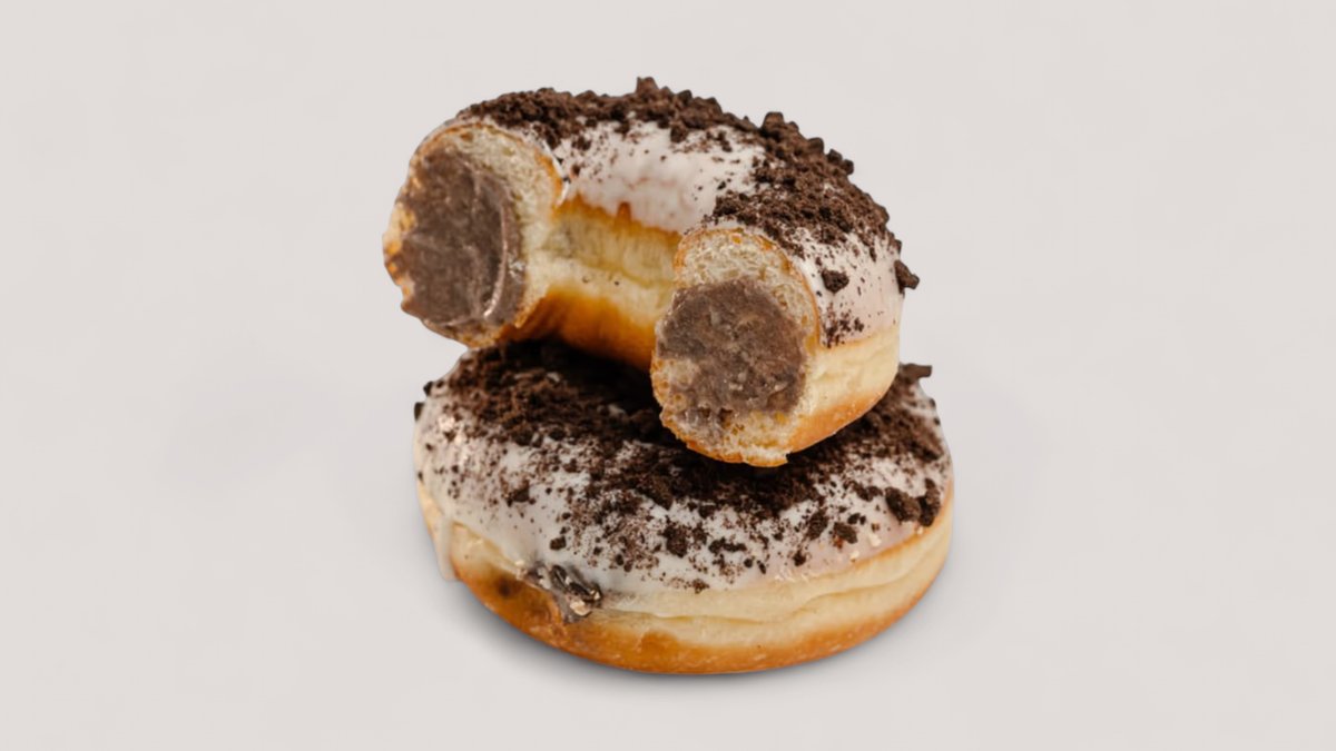Донат в молочном белом шоколаде и сливочно-кремовой начинкой “Орео” с посыпкой печенье “Орео”