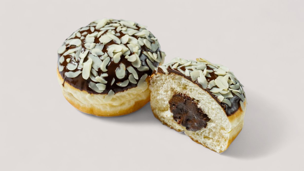 Донат в молочном шоколаде с нежным ванильно-сливочным кремом в составе которого используется специя “Ваниль бурбон”, с нотками карамели и шоколада.