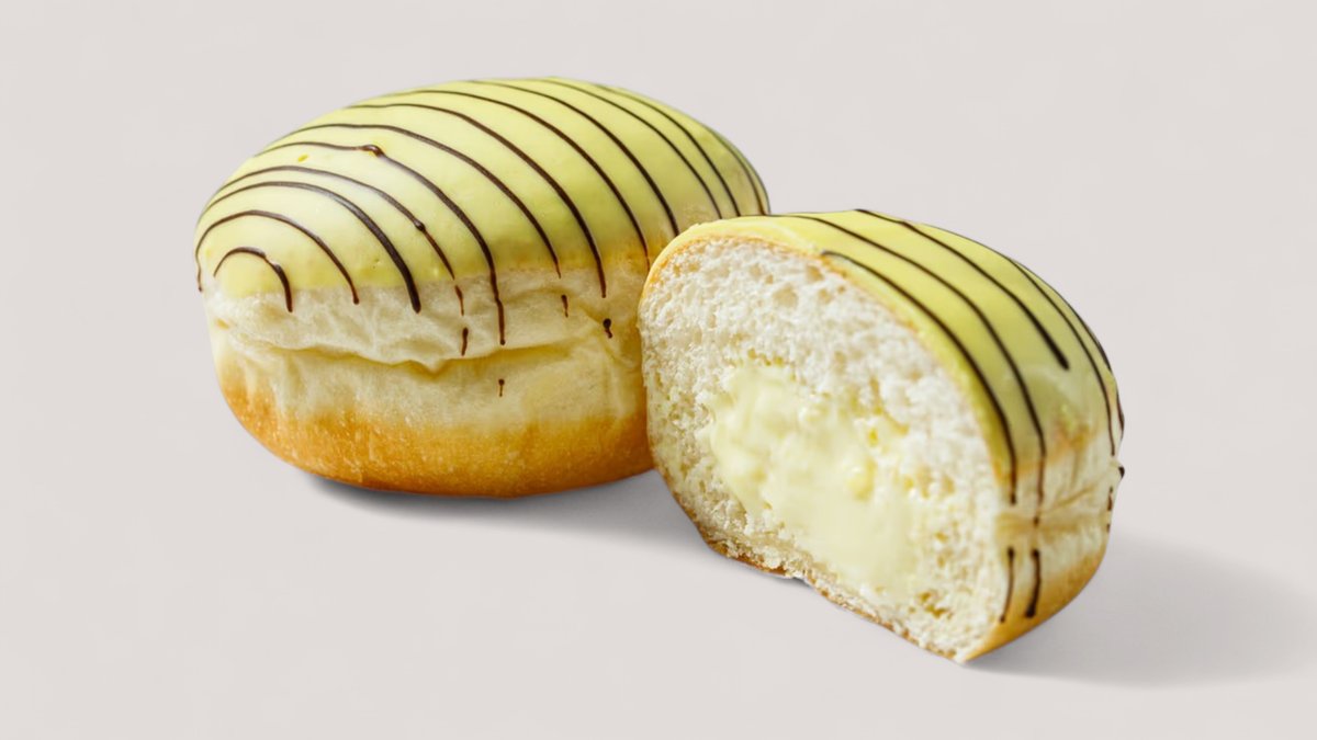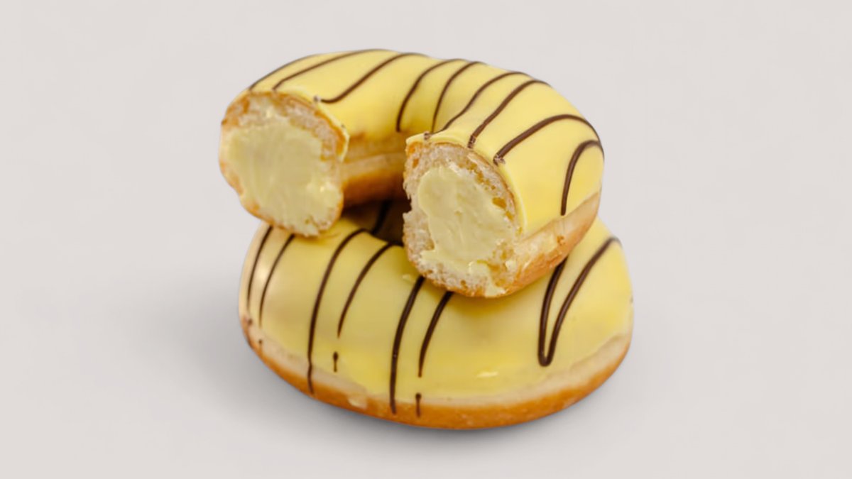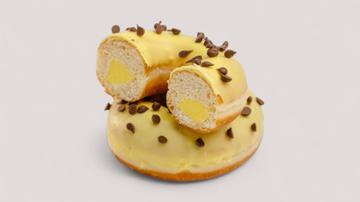 Пончик в глазури со вкусом банана и ванильно-банановым кремом