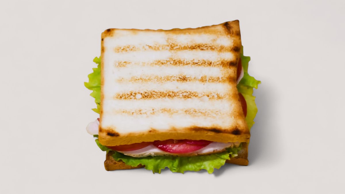 Фирменный тройной тостерный хлеб, куриная грудка, свежий огурец, помидор, омлет, сыр моцарелла, соус чесночный, соус горчичный