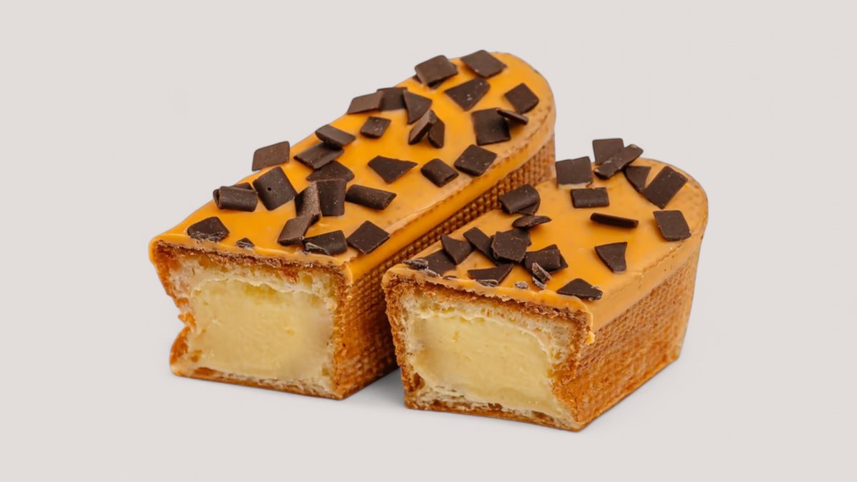 Эклер в молочном шоколаде с нежным ванильно-сливочным кремом в составе которого используется специя “Ваниль бурбон”, с нотками карамели и шоколада.
