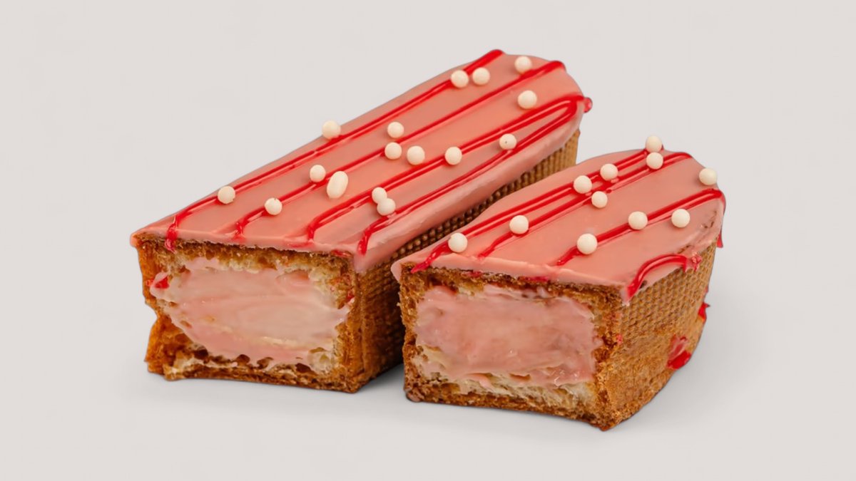 Эклер в клубничной глазури и нежным сливочным кремом со вкусом клубники