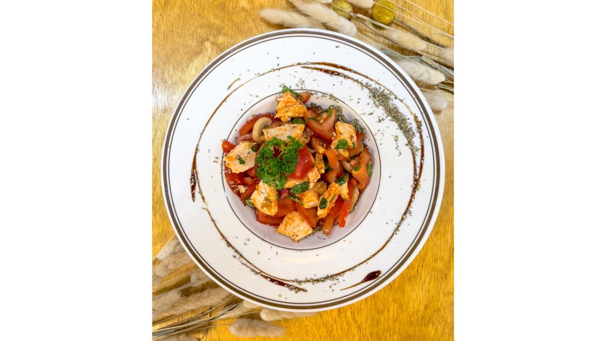 колбаса, грибы, куриное мясо, помидоры