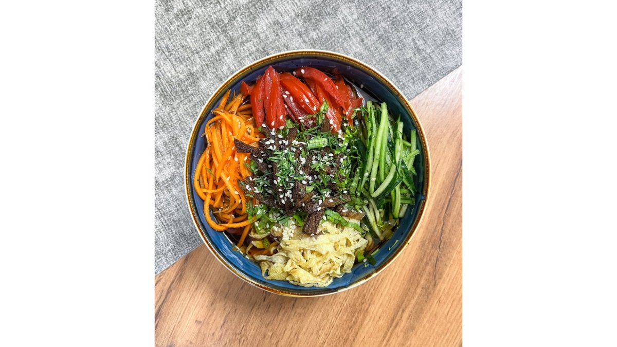 Гуйру лагман 1 порция Свежий салат 0,5 порция Лепешка Компот 0,5