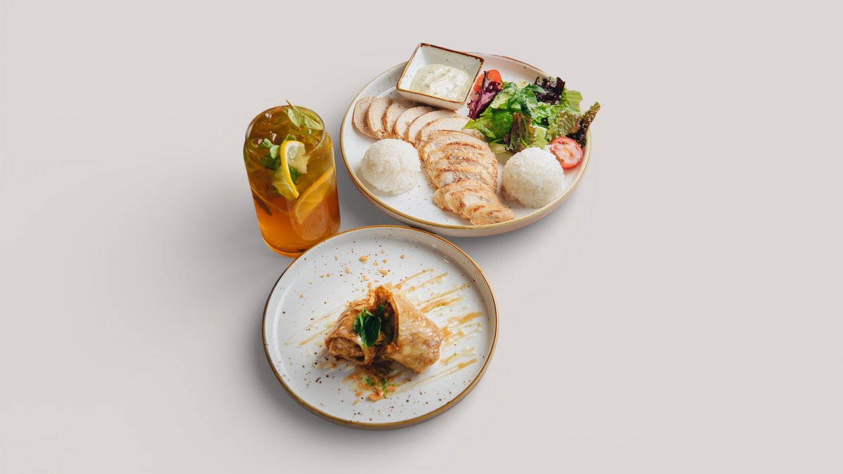СЕТ №2 Куриный стейк с соусом+гарнир+ напиток а выбор