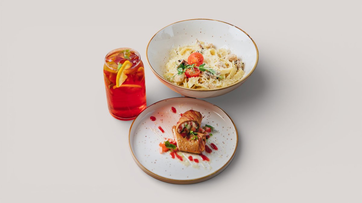 СЕТ №1 Паста Альфредо +блины нежность с творогом напиток на выбор