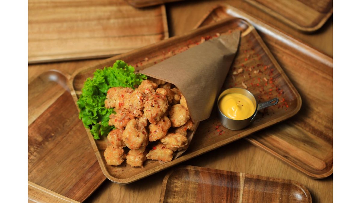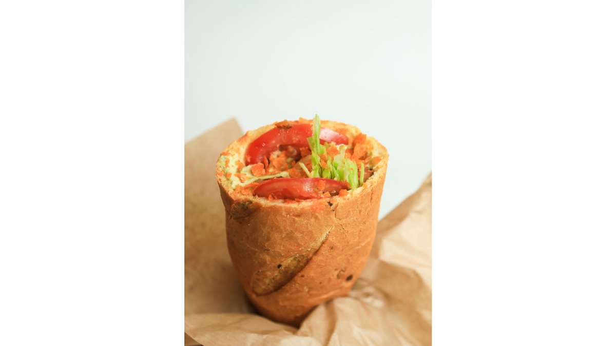 Курица в кляре,сыр,битые огурцы,помидор,капуста,фирменный соус,халапеньо