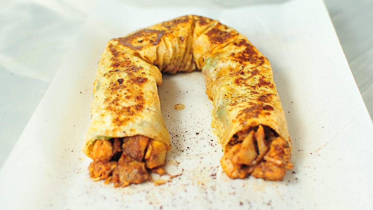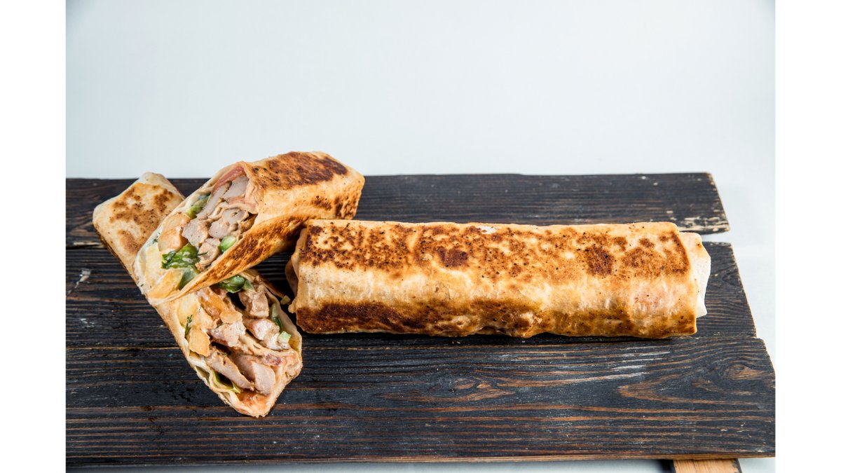 Лаваш , куриное бедро , помидоры , лук , зелень , фирменный соус