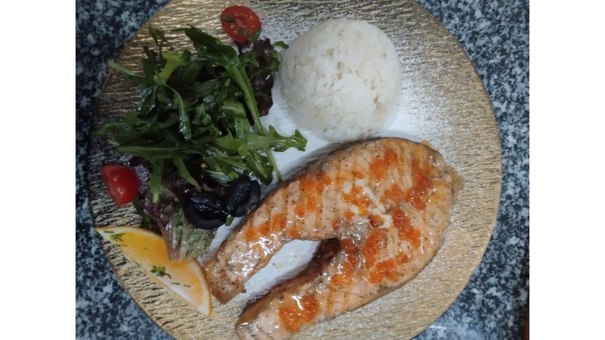 Стейк из семги с красной икрой